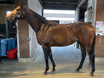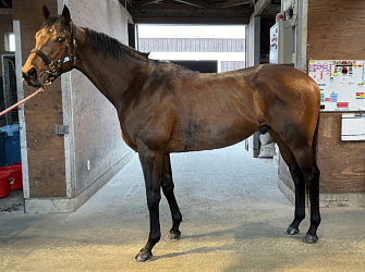 担当者の話では「初期馴致を終えてロンギ場での騎乗馴致を行っています。左前膝に腫れが見られたのですが、痛みなどは無く念のために行ったレントゲン検査でも異常はありませんでした。皮下の腫れと思われ、騎乗していても変化が無いことから、様子を見つつこのまま進めていくつもりです。もうしばらく騎乗に慣らし、基礎体力を付けた上で馬場入りを開始する予定です。馬っぷりも立派で楽しみです」とのこと。11月初旬の馬体重は483キロ。