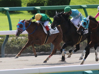 メイショウエース(新馬)強めの外0.1秒先行0.2秒先着