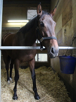 27日、武藤調教師から「環境への順応が早く、直ぐにゲート練習を開始しています。先週の段階で一通り確認をし、今朝は石田騎手を背に枠入りの練習を行ないました。初めは少し躊躇する面が見られたものの、徐々に納得して入るようになってきましたので、近日中にゲート試験が受けられそうです。飼い葉食いも良く、馬体重は490`」との連絡があった。