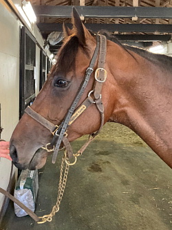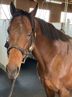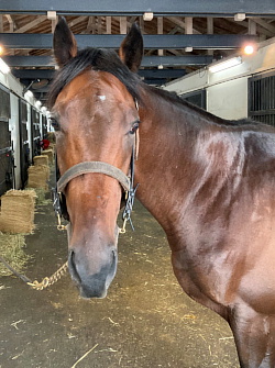 19日、武井調教師から「今朝は石神騎手を背に、ウッドコースにて長めからしっかり負荷を掛け、3頭併せを最後方追走から、最後は馬なりで併入しています。