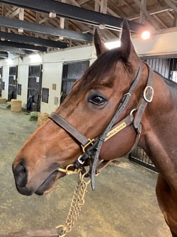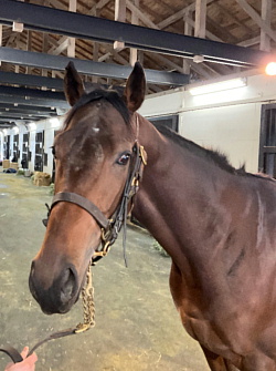 武井調教師は「初めての長距離輸送でしたが、入厩後の体調は安定しています。トレセンの環境に慣らしつつ、ゲート試験合格を目指します。現在の馬体重は520`」とのこと。