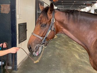 12月3日、武井調教師から「今朝の段階では繋ぎの張りや触診反応はほぼ気にならず、歩様も右前が硬い程度になっています。エコーを撮ったところ、繋の屈腱や靭帯に異常はなく、獣医からは『腱鞘に腫れがあり、腱鞘液が溜まっている状態だったので、それによって跛行した可能性がある』との診断でした。この後、更にMRIで検査を行います」との連絡があった。
