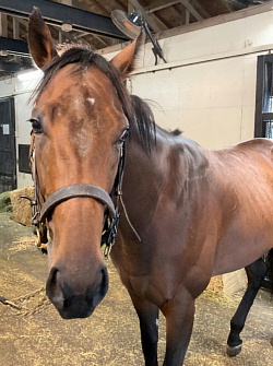 担当者の話では「予定通り先月中旬から馬場入りしています。11月18日に初登坂後、徐々にペースを上げて18秒ペースを乗り出しているところです。直近の週は周回2500mと坂路1本のメニューを週5回消化できており至って順調です。今後も馬の状態に合わせて進めて行きます」とのこと。現在の馬体重は490キロ。