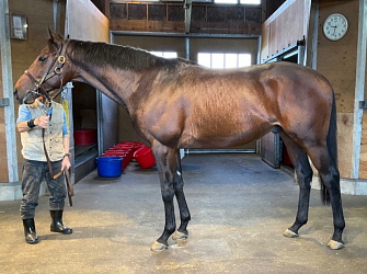 武井調教師は「馬の状態を見てきたところ、左前膝の腫れは残るものの熱感や触診痛は無く、ハロン15秒のキャンターを順調に乗り込んでいました。歩様は一貫して背中を使った物凄く良い歩きを見せますし、乗り手からは『良い背中をしている』と相変わらず高評価のコメントです。このままあと2〜3か月くらい乗り込んで6月入厩を目標にしたいと考えています」とのことだ。