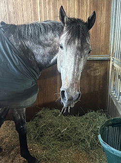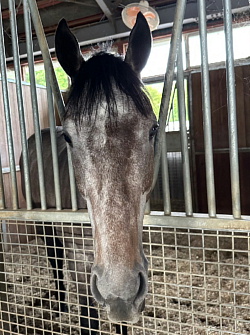 9月24日、杉山佳明調教師から「馬の状態を見てきたところ、まだ緩さは感じられるものの順調に乗り込むことが出来ていました。来週木曜の検疫が取れましたので入厩させたいと思います。まずはゲート試験合格を目指して調整を進めます」との連絡が入った。10月1日の検疫で入厩予定。