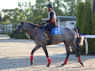 現在は週3回坂路入りし、うち2回は2本登坂、1回は坂路登坂後に周回ウッドチップコースに移ってハッキングキャンターのメニュー。