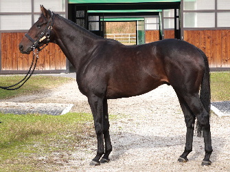 坂東牧場で調整中。担当者の話では「馴致を終えて距離を延ばして調整を進めています。現在は周回コースでダク1000m、キャンター2000m中心の調整です。初めのうちは戸惑っている様子も見受けられましたが、環境や調教メニューにも慣れ、順調に調整を行っています。促し続ける必要も無くスムーズに動いてくれていますし、このまましばらくは同様のメニューを継続し基礎体力作りに励みたいと思います」とのこと。10月中旬の測尺は、馬体重437キロ、体高152センチ、胸囲178センチ、管囲20.5センチ。