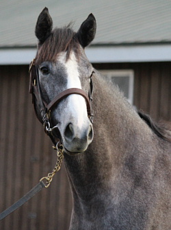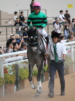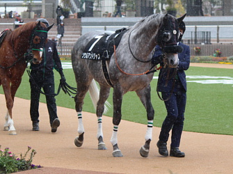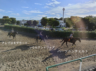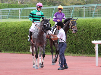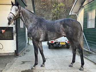担当者の話では「ロンギ場での騎乗馴致を終えて、先週は周回コースと坂路に入ってスクーリングまで進めています。先週半ばから今週月曜までリフレッシュを兼ねてトレッドミル馴致を行いました。8日からロンギ場での騎乗調整を行い、10日には坂路をゆっくり登坂させています。当面は環境に慣らしつつ進めて行く予定です」とのこと。11月10日現在の馬体重は471キロ。