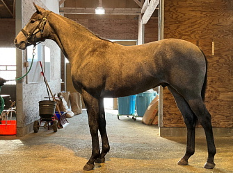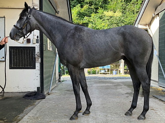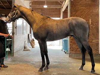 担当者の話では「ハシモトファームで乗り馴致まで進めていたこともあり、こちらにきてからもスムーズに周回コース、坂路コースへと進めることができています。現在は坂路で18〜19秒のメニューを中心に進めており、心身ともに環境や調教に慣れてきたところです。ゆったりとしたメニューで乗り出した段階ですが、柔らかみのある動きを見せており、芝でこそ力を発揮するタイプのように思われます。父の産駒は概ね活発でやんちゃなタイプが多く、本馬もその傾向は感じられます。成長曲線は兄より遅く、まだ筋肉のメリハリはこれからといった印象ですので、今後の動きや成長に合わせて進めて行く予定です」とのこと。馬体重466キロ。