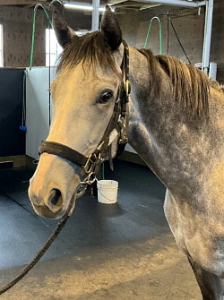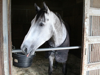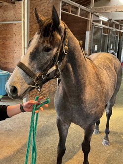 担当者の話では「入場後、徐々に馴致を進めてきており、現在はロンギ場での騎乗馴致を行っています。今のところ問題無く順調です」とのこと。現在の馬体重は472キロ。