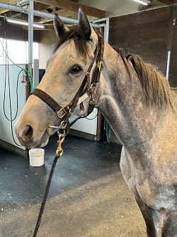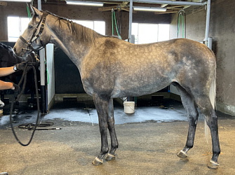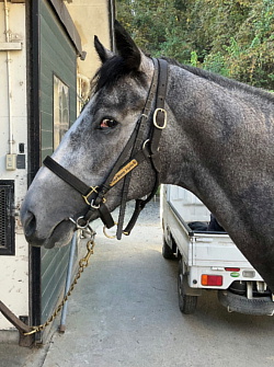 担当者の話では「14〜15秒ペース中心で乗り込んでおり、抜群の動きを見せています。武井調教師から話があったように、来月には移動可能なように進めて行きたいと思っています」とのこと。馬体重は491キロ。