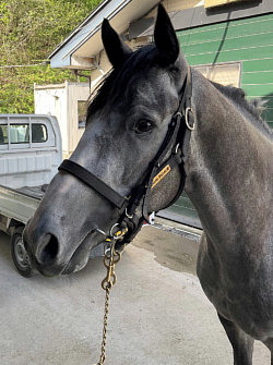 ノーザンファーム空港牧場で育成中。現在は週2回坂路2本(17−17か18−18)、週2回坂路1本と周回コースでのキャンター、その他の日はウォーキングマシンの調整を行っており順調。