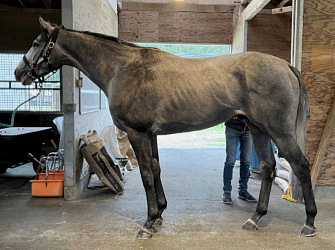 25日、武井調教師から「今週は曳き運動を中心の軽めの調整です。ソエの症状も歩様には出ていないので、今週末から時計を出していく予定です」との連絡があった。