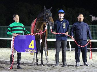 3月9日(日)高知・ブラッドストーン特別(A−1・ダ1,600b)に宮川騎手で出走し見事優勝。