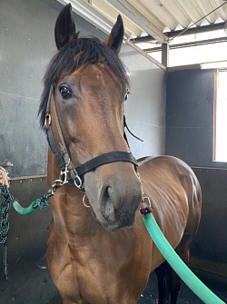 28日、打越調教師から「入厩が予定より遅くなりましたが、体調面は問題無く、飼い喰いも良好です。今日から早速騎乗運動を開始しましたが、立派な馬体で元気良く走れていました。先ずは来月の能力試験に向けて、ゲート練習から進めていきます。本馬も東海ダービーを制覇したセブンカラーズに近づけるよう、頑張っていきたいと思います」との連絡があった。