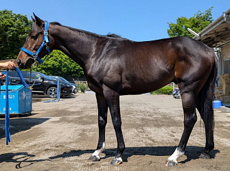 担当者から「週中の坂路強めは15秒から入り、そこから13秒ペースで登坂しています。順調に乗り込めていることで、徐々に馬体も芯が入ってきた印象です。前進気勢の強さからややピッチ気味の走りをしているので、適性はマイル前後になると思います。北海道も暑さが厳しくなってきているので、現在は朝6時の開門と同時に調教場へ入り、なるべく涼しい時間帯で調教を終らせて夏バテ対策を行なっています。気温が30度を超えだしたタイミングで、少し調教ペースは緩める予定です。本馬自身はいまのところ体調面に問題は無く、飼い葉喰いも良好です」との連絡が入っている。