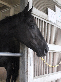 場長は「リフレッシュ調整を挟んで疲れを抜き、現在は週1〜2回坂路で強めを乗り、その他の日は角馬場で長目をじっくり乗るメニューで進めています。坂路では主に5ハロン70−40のメニューを消化しており、まだ現状ではラスト13秒台を促しながら上がっている感じです。追い切る毎に課題を乗り越えている感触はあり、ラストのもう一踏ん張りが利くようになれば全ての課題クリアと言えそうです。強目を消化しながら飼い葉は食べてくれており、馬体が減りにくくなったのは良い傾向です。先日来場した林調教師から『暑くなりすぎる前にトレセン近郊へ移動させても』という話が出ており、移動にも対応出来るようにパワーアップしていきたいと思います」とのこと。馬体重は470キロ。