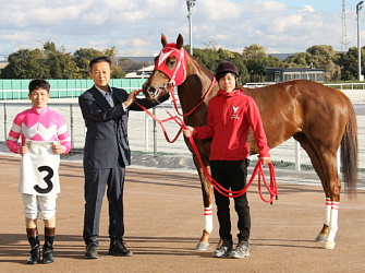 3月13日(金)名古屋・C4組(ダ1,500b)に今井騎手で出走し見事3連勝を飾った。