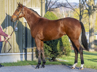 社台ファームで育成中。夜間放牧を継続しながら日中に騎乗馴致を行ない、丸馬場での集団騎乗も問題無いことから10月11日に調教厩舎へと移動。