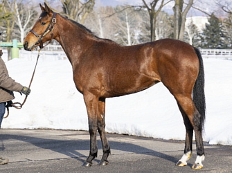 社台ファームで育成中。週2回坂路2本(F16秒)中心に進めているが、3月14日に右上腕に外傷を負ってしまい、患部が落ち着くまでケアに専念する。