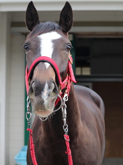 担当者の話では「右後肢の捻挫も完治し再調整を進めており、馬は元気いっぱいで毛艶も良くなってきました。坂路の動きは良いですがまだ遊びながら走っている感じで集中してほしいところです」とのこと。現在の馬体重は530キロ。