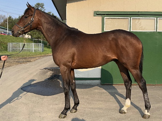 9月10日にエクワインレーシングへ移動。現在は夜間放牧を行ないながら、日中は人に慣れさせる初期馴致を始めている。9月中旬の馬体重は410`。