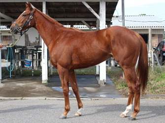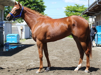 ハシモトファームで騎乗馴致(ロンギ場内で駆け足)を行ない、24日にチェスナットファームへ移動。9月中旬の馬体重は465`。
