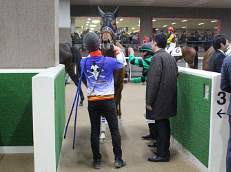 尾関調教師から「調整過程で繊細な一面を見せていましたが、今日は馬場入りから返し馬までスムーズに行うことができました。前走(1,200b)に比べて道中はスムーズでしたし、道中の手応えに余裕を感じていましたが、4コーナーを廻る時に内と外の馬に接触していました。直線で追い出してからも、右にモタれていたので、もう少し成長が必要に感じます。この後については、レース後の状態次第で検討します」との話がありました。