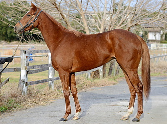 チェスナットファームで育成中。年末年始のリフレッシュ期間を終えて1月7日から乗り出し、現在は周回600mコースにて4周の普通キャンターを中心に、今週から坂路でハロン16秒ペースの登坂を開始。