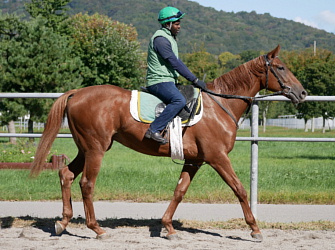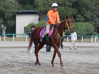 8月26日に武田ステーブルへ移動。初期馴致を順調に進め、現在はBTCの屋外ダートコースで乗り慣らしを行なっている。9月下旬の馬体重は424`。
