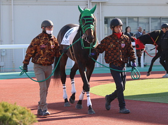 田中範雄調教師から「負けたのは悔しいですが、今日は相手が悪かったです。雨で馬場が締まり、走りやすいコンディションだったこともJRA勢に有利に運びました。勝負所で内から掬われモタつきましたが、直線で差し返す脚を見せ、調教の成果は出ていたと思います」との話がありました。