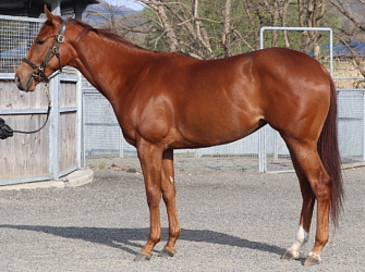 愛知ステーブルで育成中。11月13日に胃カメラで再検査を行ない、胃潰瘍もなくなり回復を確認。徐々に飼い葉を増やしつつそろそろ乗り出そうとしたところ、全身に蕁麻疹が出来てしまい再度回復に努めている。
