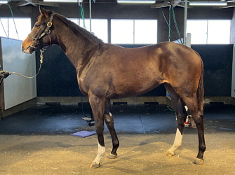 ハシモトファームで初期馴致を進め、現在は夜間放牧を行いつつ馬房内で乗り慣らし中。トレッドミルの馴致も済ませており、そろそろノーザンファーム空港牧場への移動を予定している。9月中旬計測の馬体重は447`。