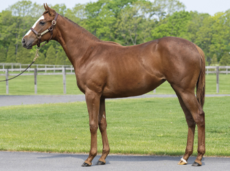 担当者の話では「予定通りに運動量を増やしてきており、現在は週5回坂路入りし、月曜はトレッドミル+坂路1本、火〜木は坂路1本メインの調整、金曜に坂路2本を乗るメニューです。走りはピッチ気味でスピードタイプ。まだ馬体が幼く非力な面はありますが、走りに対して前向きさがあり順調です。脚もとも問題なく、体型は父の産駒らしい特徴が出ているようです。今後も馬に合わせたメニューで進めていきます」とのこと。現在の馬体重は460キロ。